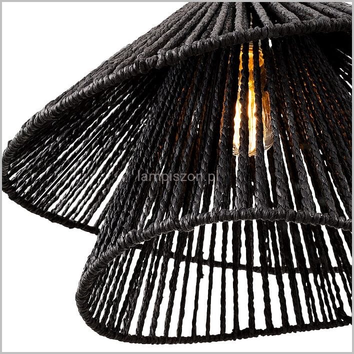 Amalfi II to rozbudowana forma lampy AMALFI-I. Abażur lampy jest wykonany z plecionych papierowych sznurków i jest dostępny w dwóch kolorach: naturalnym i czarnym. Podwójny stożkowaty klosz o średnicy 45 cm i wysokości 36 cm ma ciekawie falowaną dolną krawędź. Dzięki ażurowej strukturze lampa będzie rzucać na sufit i ściany przyjazny słoneczny wzór.