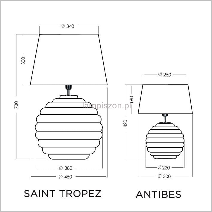Lampa Antibes, podobnie jak jej większa wersja Saint Tropez, swoją nazwę zawdzięcza miejscowości wypoczynkowej na Lazurowym Wybrzeżu. Obie są piękne, kształtne, w eleganckich kapeluszach - abażurach, jakby właśnie przyjechały z luksusowego kurortu.