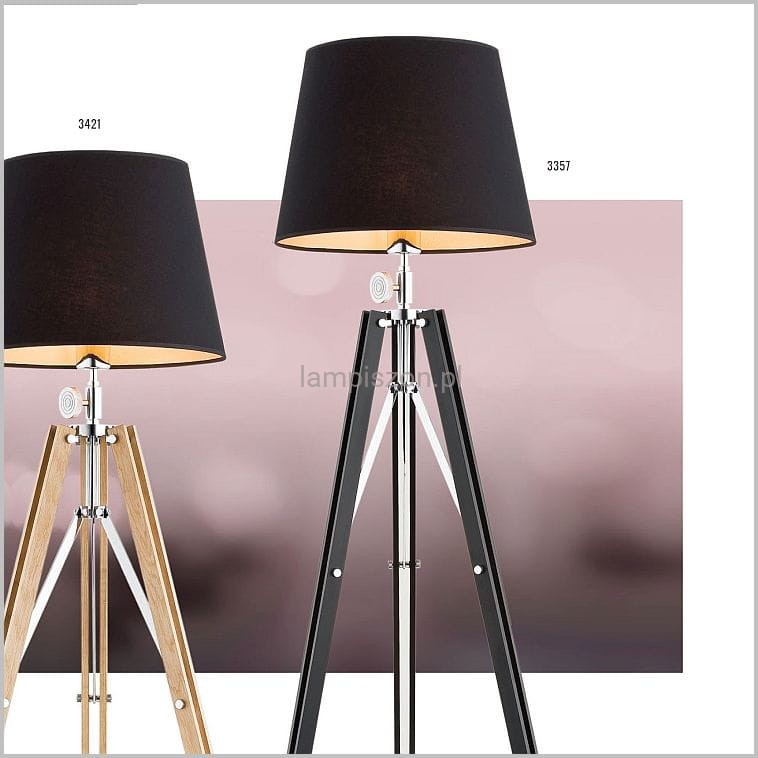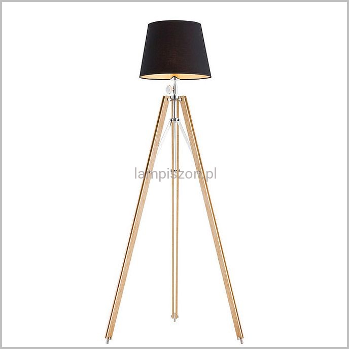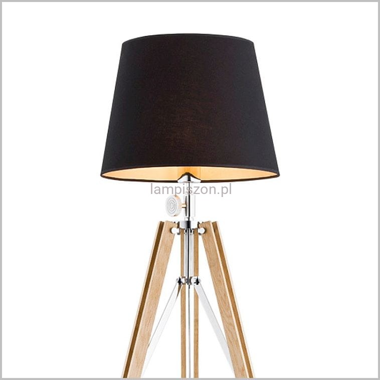 Aster drewniana lampa podłogowa tripod z czarnym abażurem 1xE27 Argon