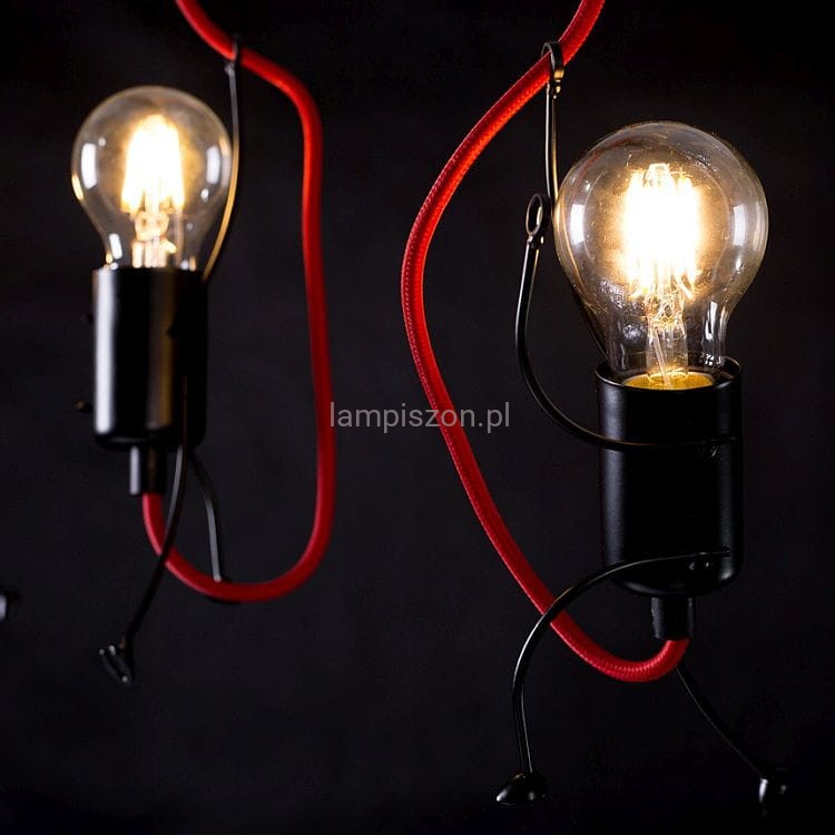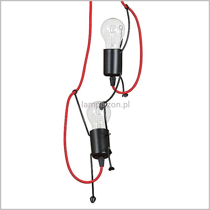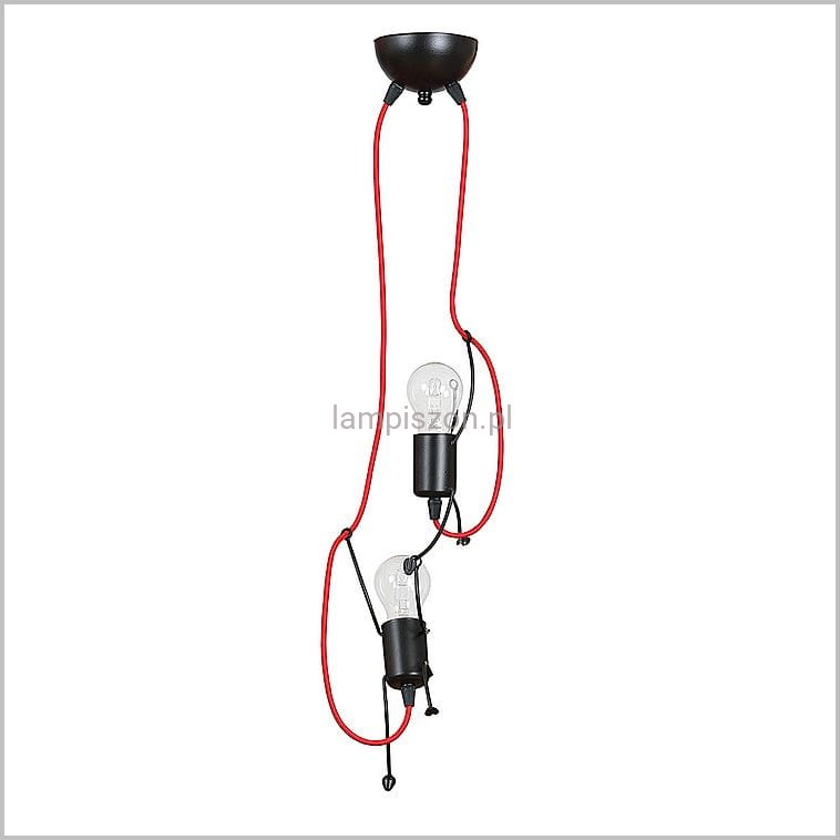 Bobi 2 Black czarna lampa wisząca z czerwonymi kablami dwa wesołe ludziki 2xE27 Emibig