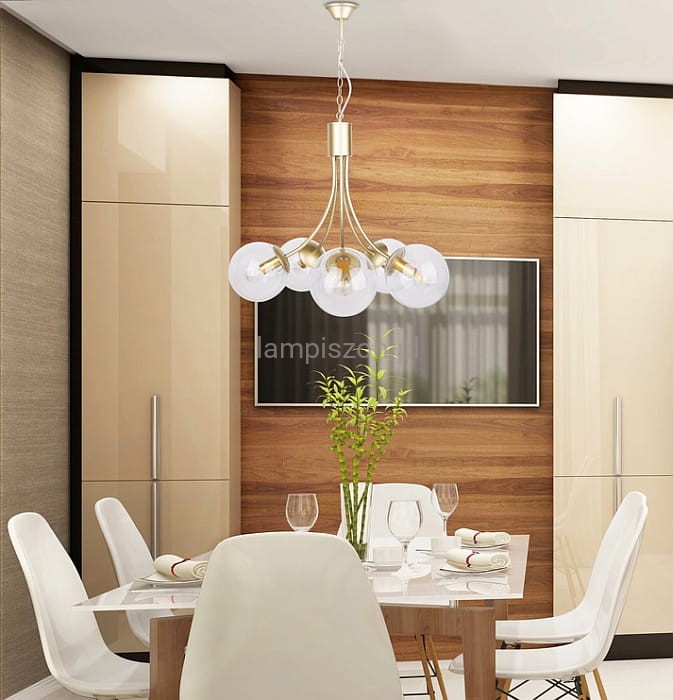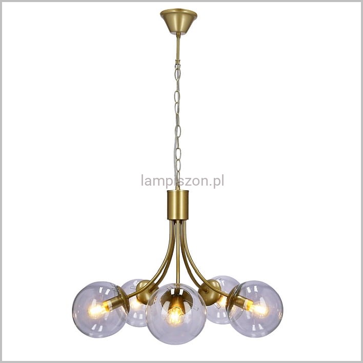 Złoty żyrandol pięciopłomienny DANI może być oświetleniem i ozdobą salonu lub jadalni. Sprawdzi się też w jadalniach i holach hotelowych. Będzie pasował do stylu modernistycznego, a także we wnętrzach stylizowanych na klasyczne.