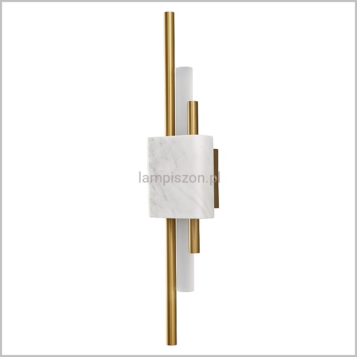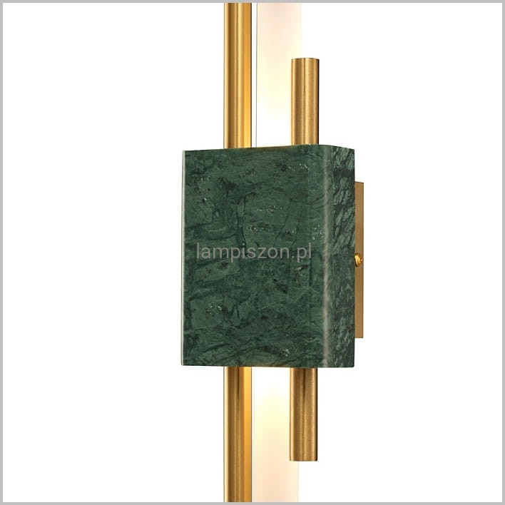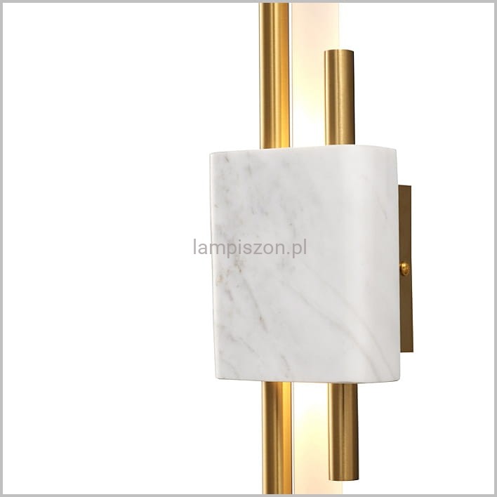 Kinkiet ELLIE LED to oświetlenie dla osób lubiących elegancję i luksus. Lampa łączy w sobie nowoczesny geometryczny kształt i tradycyjne materiały: kamień naturalny, szkło i metal w kolorze złota.