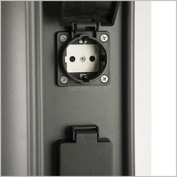 ELBORN to funkcjonalna oprawa oświetleniowa, która poza funkcją świecenia, posiadająca dwa gniazdka elektryczne 230V, które można wykorzystać do podłączenia dowolnego sprzętu ogrodowego. Gniazda, o maksymalnej mocy 1500W każde, zostały ukryte za uchylnymi drzwiczkami, co dobrze wpływa na wygląd lampy w momencie, w którym nie są one używane.
