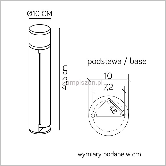 | wymiary | średnica 10 cm; wysokość 46,5 cm |