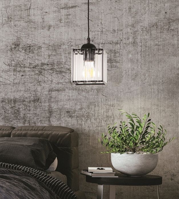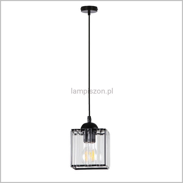 Lampa wisząca GLASSIA swoim kształtem i stylem nawiązuje do stylu vintage, ale sprawdzi się również we wnętrzach nowoczesnych. GLASSIA to niewielka lampa, klosz ma wymiary 12 x 12 x 12 cm. Ramka jest wykonana ze stali lakierowanej na czarno, a wypełnienie stanowią kryształy z bezbarwnego akrylu. Dzięki temu światło żarówki nie jest stłumione, a tylko lekko rozproszone i nie powoduje efektu olśnienia.