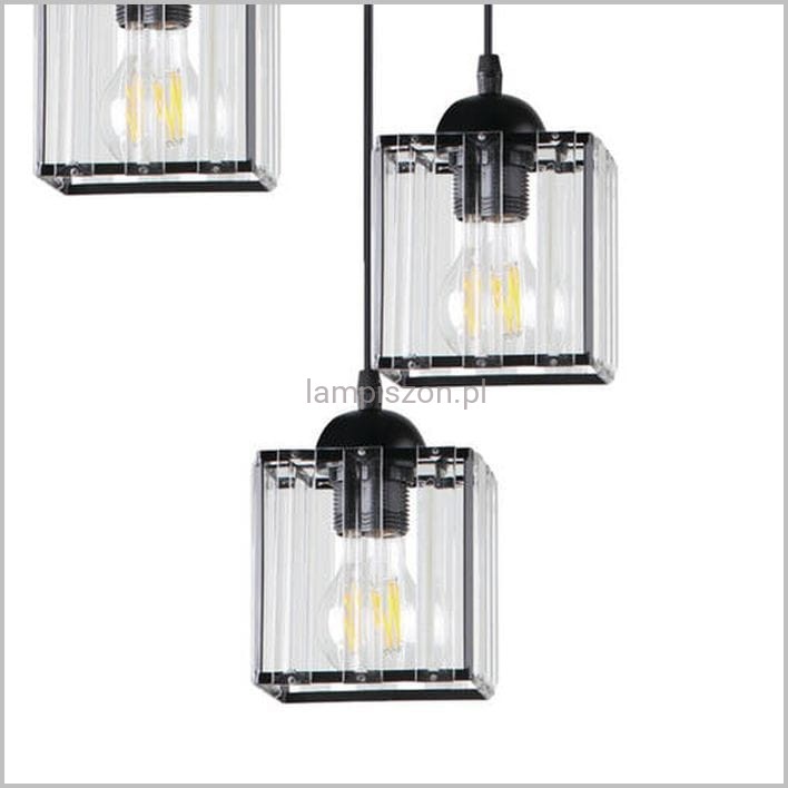 Model GLASSIA 33-21137 składa się z metalowej podsufitki w formie talerza o średnicy 29 cm i trzech niewielkich kloszy zawieszonych na czarnych przewodach. Podsufitka i ramki kloszy jest wykonano ze stali lakierowanej na czarno, a wypełnienie kloszy stanowią kryształy z bezbarwnego akrylu. Cała lampa GLASSIA ma wysokość 80 cm i poszczególne zawiesia można skrócić przy montażu oprawy. Lampę zaprojektowano na żarówki na dużym gwincie E27.
