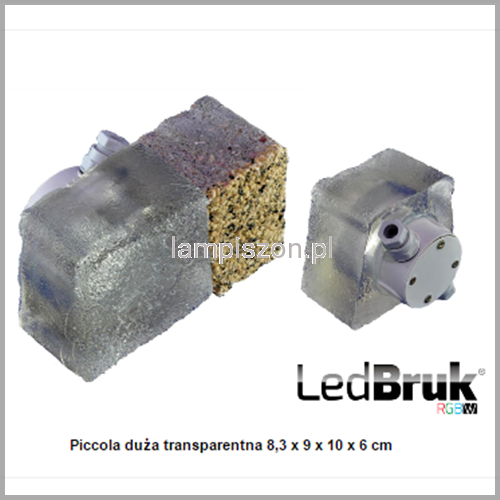 LEDbruk Piccola oprawa zewnętrzna LED o wymiarach 8,3 x 9 x 10 x 6 cm, idealnie dopasowana do standardowej kostki betonowej Piccola. Świecące kostki brukowe można wykorzystać jako ozdobę, ale także jako informację w terenie, np granice parkingu, oznaczenie wjazdu itd. Oprawy LEDbruk są zasilane prądem 12V, wymagają zasilacza (najlepiej umieszczonego w pomieszczeniu, np. garażu, piwnicy).