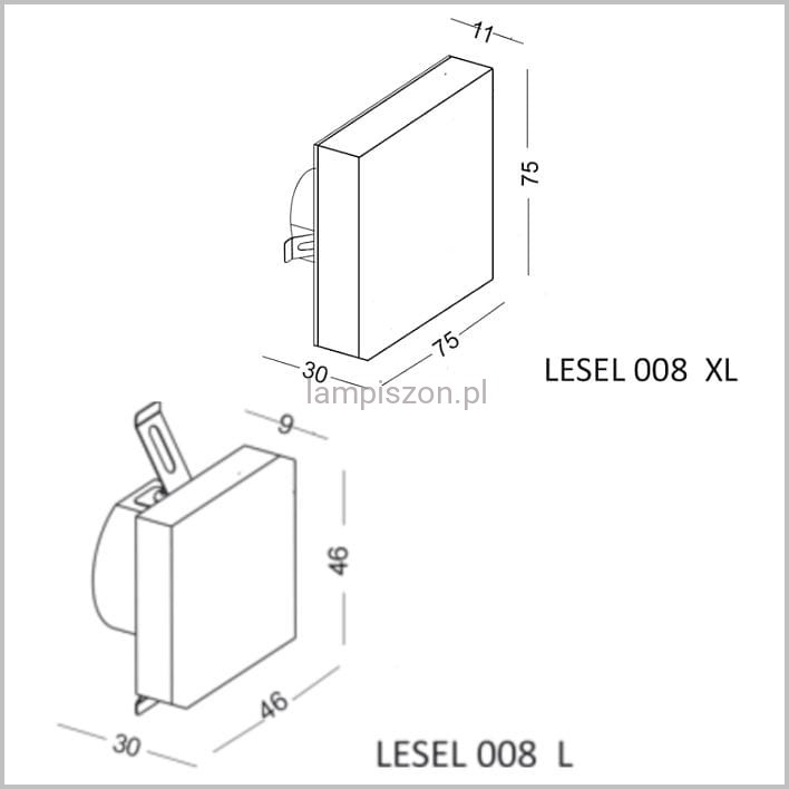 Niewielka oprawa schodowa Lesel LED może być montowana w płytę gispowo-kartonową lub w mur, wymiary otworów podano na rysunku (puszka montażowa oraz zaciski sprężynowe do G/K są dołączane do zestawu).