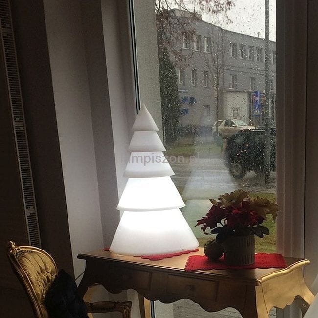 Biała podświetlana choinka wykonana z polietylenu PE, tworzywa odpornego na niskie i wysokie temperatury, uderzenia i zadrapania. LuXmas to piękna świąteczna ozdoba, która może być używana zarówno wewnątrz jak i na zewnątrz. Choinka ma 70 cm wysokości i średnicę przy podstawie 44cm. Jest wyposażona w źródło LED światła białego zimnego o mocy 7W.