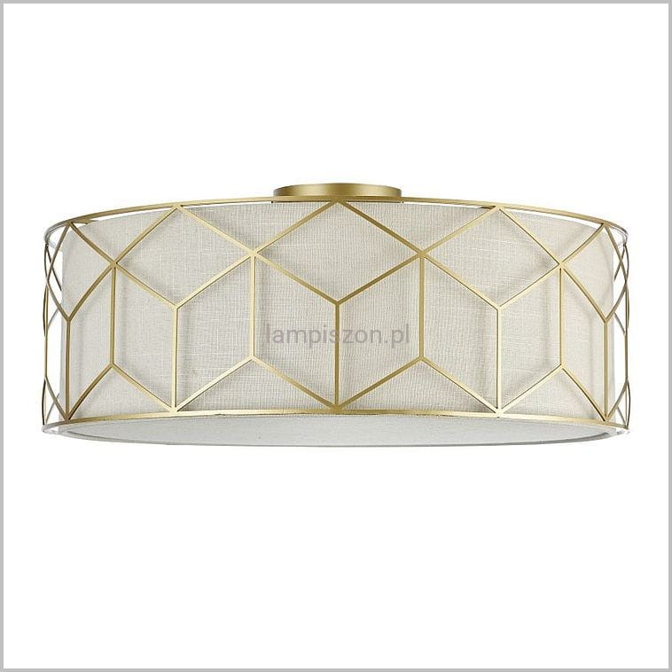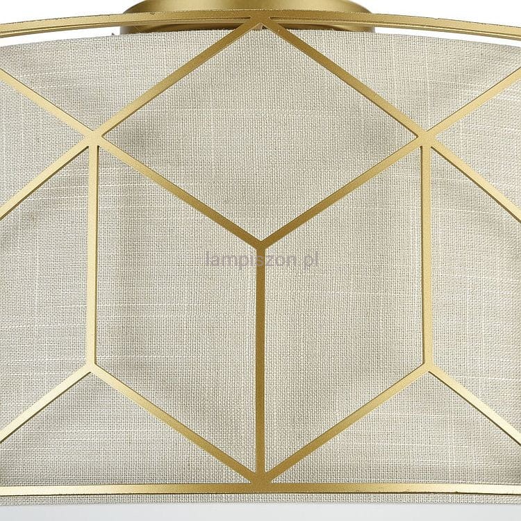 Abażur jest wykonany z lnianej tkaniny naciągniętej na bezbarwny podkład pcw. Elementy metalowe wykończono w kolorze złota. Lampa od spodu ma okrągłą blendę z matowego pcw o średnicy mniejszej o kilka centymetrów od średnica klosza. Takie rozwiązanie pozwala na uniknięcie efektu olśnienia bez zbytniego przytłumienia światła. Plafon Messina ma wysokość 23.9 cm.