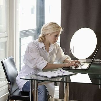Rondo LED 40 Innojok okrągła, przypominająca tarczę słoneczną, lampa do światłoterapii jasnym światłem. Lampa ma niski poziom jaskrawości co czyni ją wyjątkowo przyjazną dla oczu osób szczególnie wrażliwych na jasne światło. Rondo LED jest wygodne w stosowaniu i może być włączane na długi czas - światło lampy Rondo może przyjaźnie towarzyszyć w domowym zaciszu np. podczas czytania, oglądania telewizji, wypoczynku. Oprawa zajmuje niewiele przestrzeni, można ją łatwo ustawiać np. na stole w kuchni, w pokoju lub na biurku a także powiesić na ścianie.