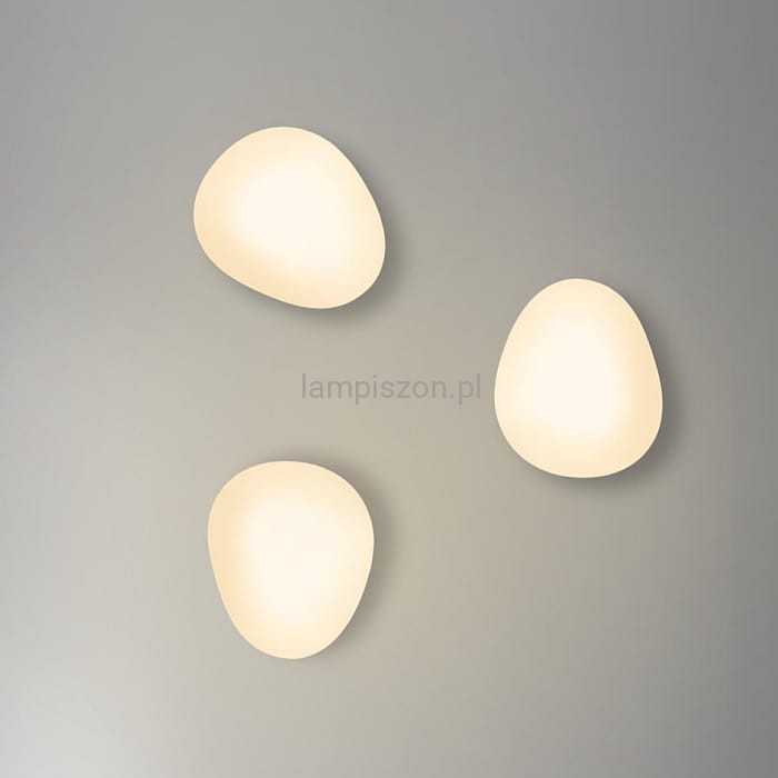 Kinkiety STONES 13-35189 kształtem przypominają kamienie. Klosze lamp wykonano z wysokiej jakości białego matowego akrylu, który dobrze rozprasza światło. Wielkość tych świecących kamieni to ~30 x 30 cm.