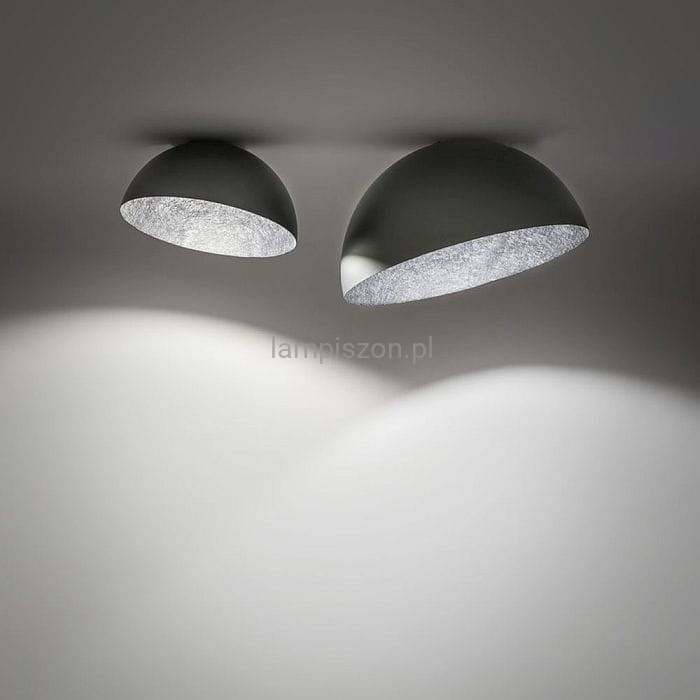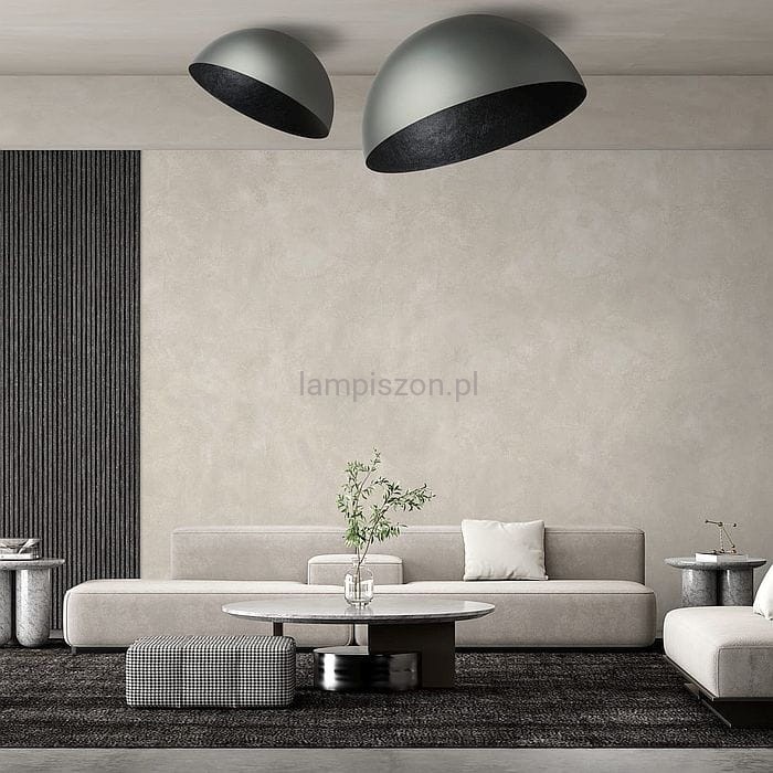 Sfera to lampa elegancka i prosta. Jej urok polega na tym, że klosz o kształcie półkuli jest asymetrycznie mocowany do sufitu. Lampa jest wykonana z kompozytu mineralnego, z zewnątrz ma gładką powierzchnię, od środka pokazano naturalną fakturę materiału.