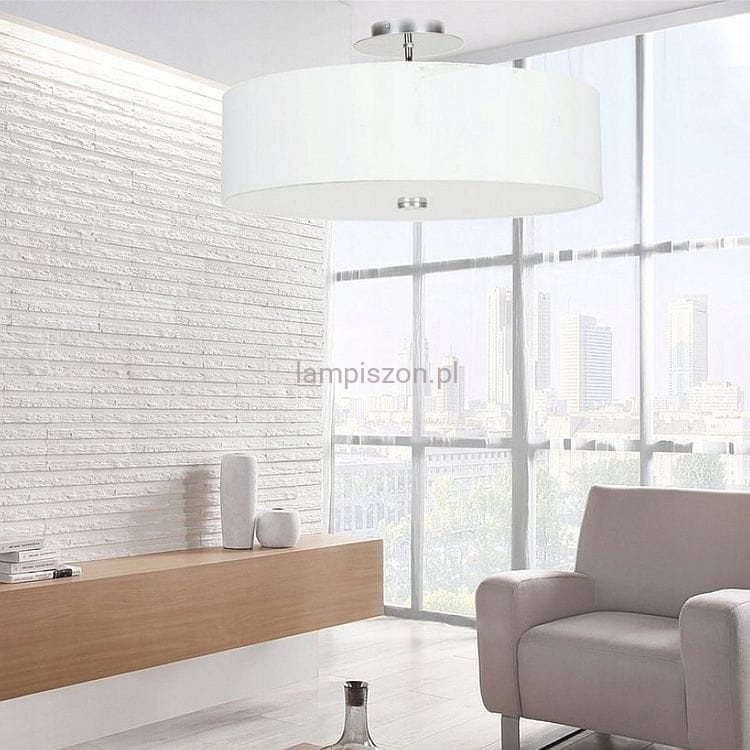 VIVIANE to idealne rozwiązanie do sypialni, a także do niewysokiego salonu. Lampa jest wdzięcznie odsunięta od sufitu, ale nie jest tak długa jak lampa wisząca. Abażur w kształcie walca ma od spodu przesłonę z matowego białego szkła, dzięki czemu żarówki nie są widoczne, a światło jest ładnie rozproszone. VIVIANE jest dostosowana do trzech żarówek E27 0 mocy 60W, a więc może dobrze oświetlić wnętrze.