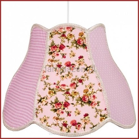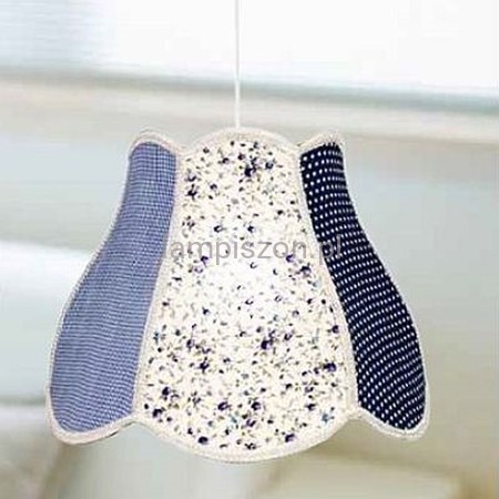 Abażur lampy jest wykonany z tkaniny. Dostępne są dwa warianty: patchwork w odcieniach niebieskiego i patchwork w kolorach różu. Prosimy zaznaczyć swój wybór w uwagach do zamówienia.